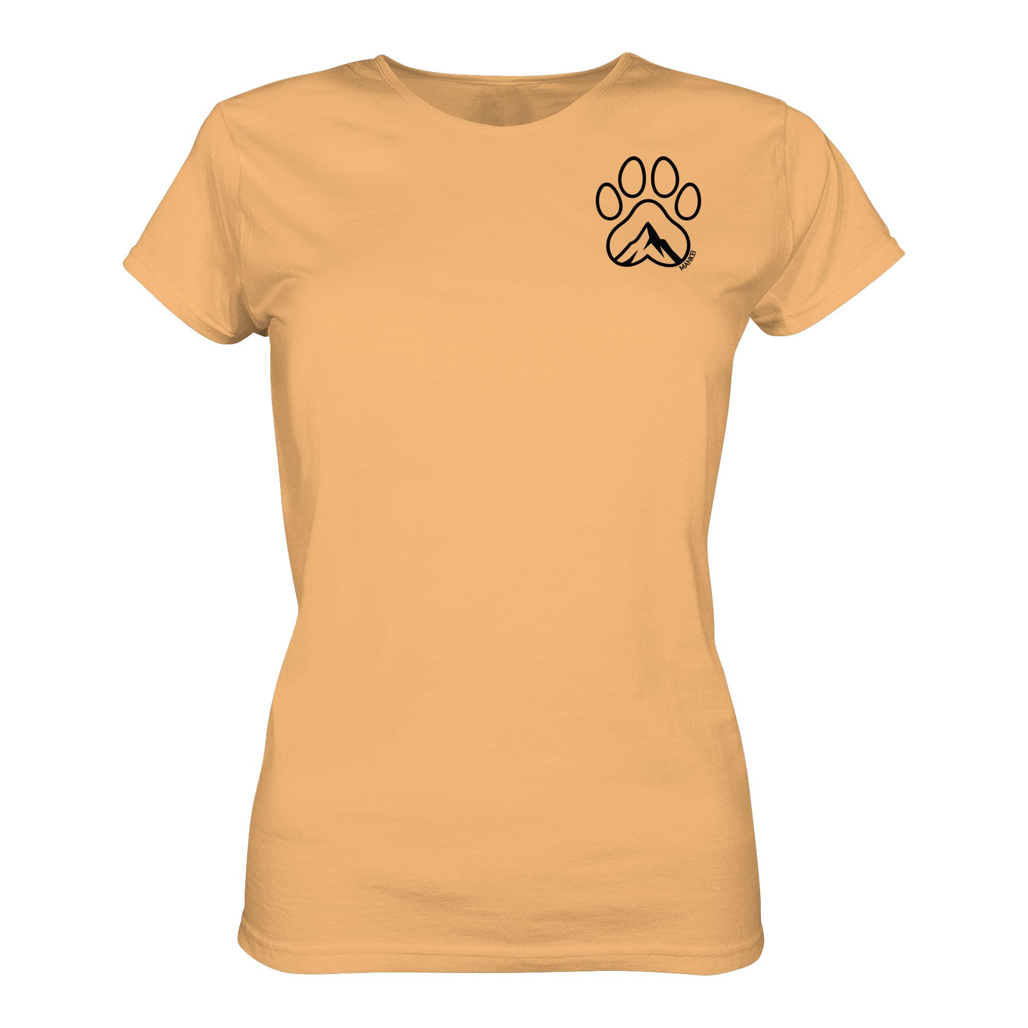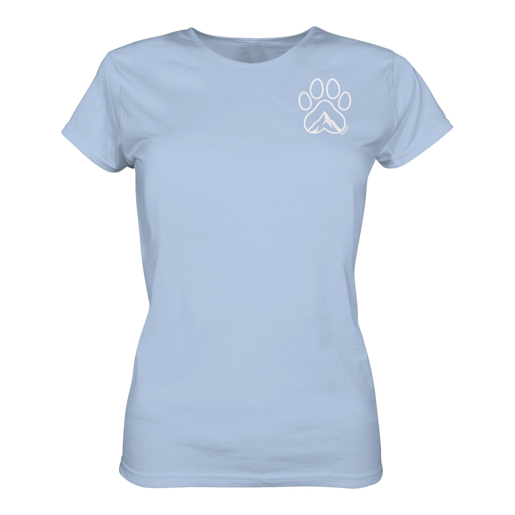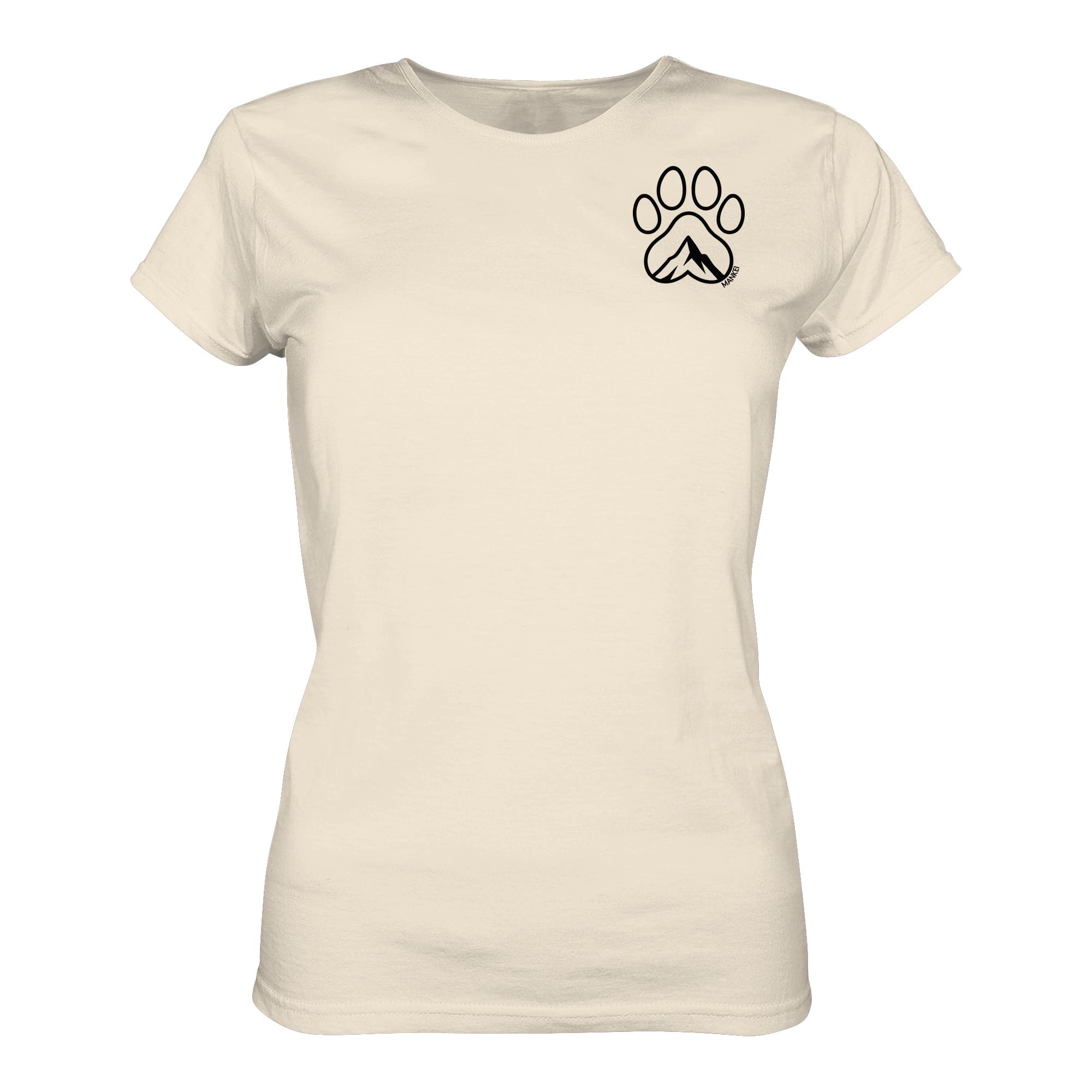 Wandern mit Hund – das Hundepfote Berg Damen T-Shirt. Elegantes T-Shirt für Hundefreunde aus bester Bio-Baumwolle – ein tolles Geschenk Hundebesitzer und Bergfreunde!